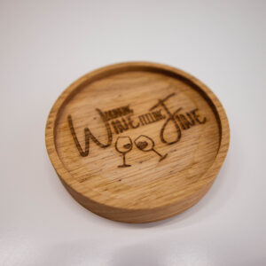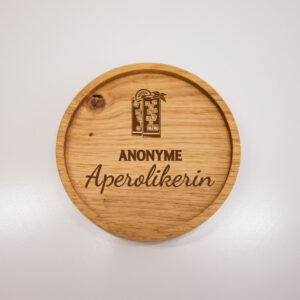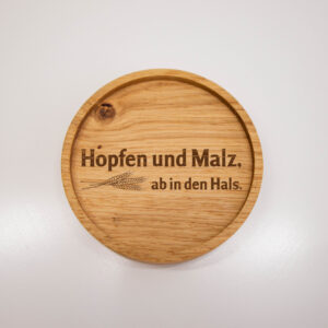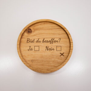 Das gibt es nur bei uns. Der superschöne Untersetzer aus Eiche mit integriertem Schnapgsglashalter.